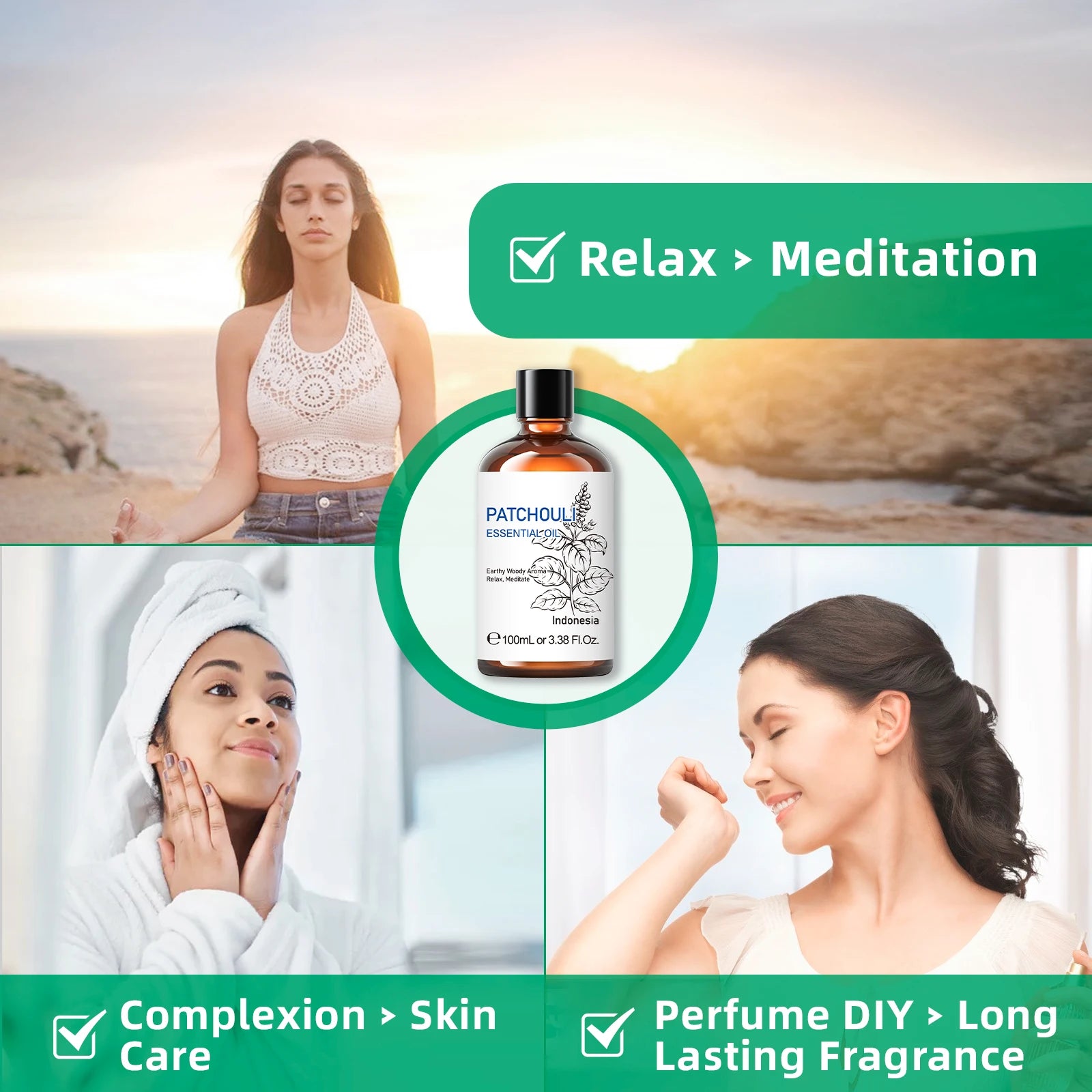 - You receive a 100 ml bottle of pure Patchouli essential oil, steam-distilled from leaves, with a deep golden-brown hue and a medium-thick consistency for easy application.